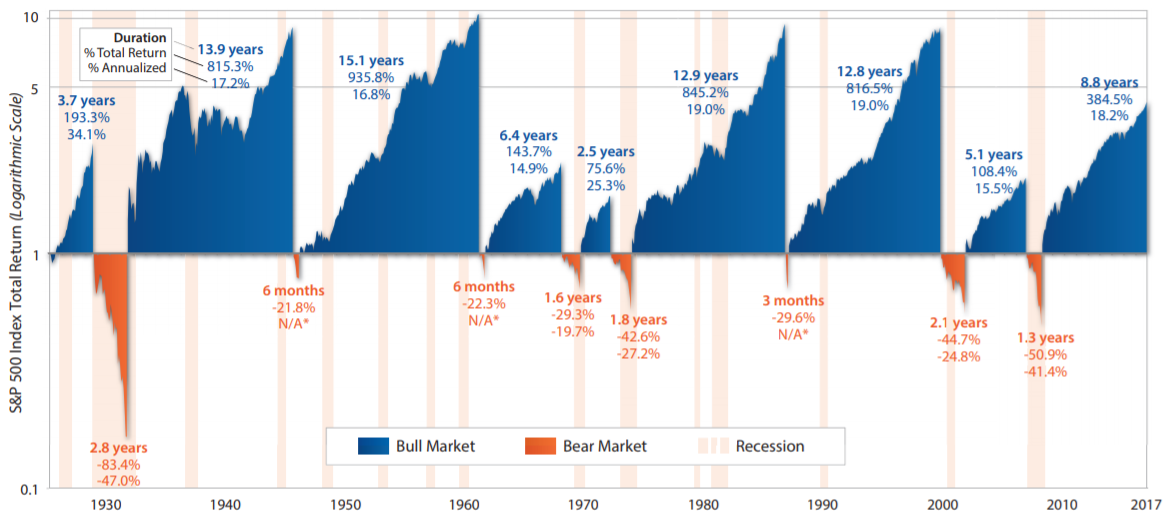 Sam Stovall, chief investment strategist for CFRA, stated that historically the longest bull markets “went out with a bang and not a whimper. Like an incandescent light bulb, they tend to glow brightest just before they go out.” The market performance had surpassed most Wall Street’s expectations in 2017, forcing many to raise their expectations for 2018.